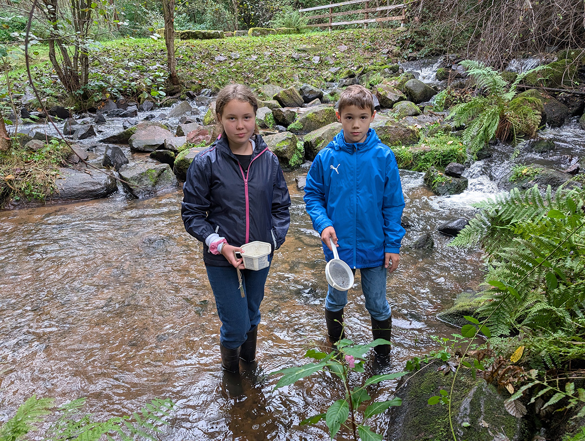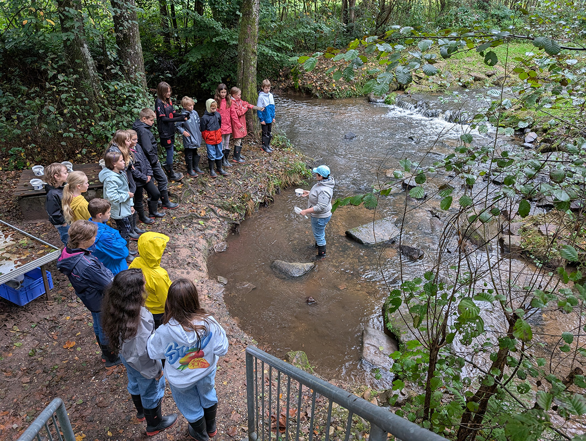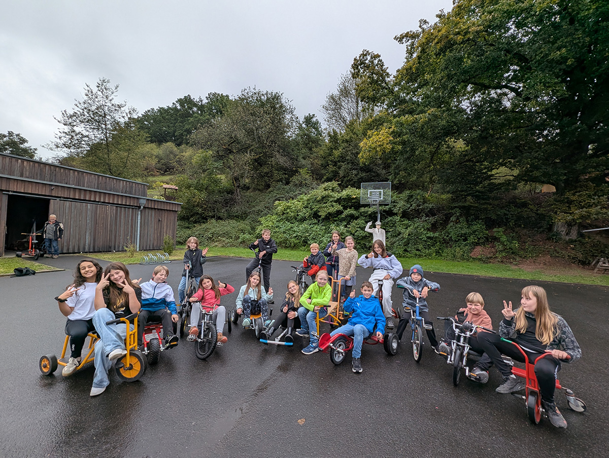 Gleich zu Beginn des neuen Schuljahres verbrachte die Klasse 5b vom 24. bis 26. September 2025 gemeinsam mit ihrer Klassenlehrerin Frau Denecke und ihrem Musiklehrer Herrn Borho unvergessliche Kennenlerntage im Schullandheim Hobbach. Schon die Busfahrt dorthin war voller Vorfreude und Aufregung. Vor Ort wartete ein abwechslungsreiches Programm, das nicht nur für viel Spaß, sondern auch für ein gutes Miteinander sorgte. Im Rahmen einer Schullandheimrallye erkundeten die Schülerinnen und Schüler das Gelände und stellten dabei ihren Teamgeist unter Beweis. Besonders interessant war auch das Projekt „Fließgewässer“: Mit Sieben und kleinen Plastikgefäßen wurden Tiere aus dem Bach gefangen. Anschließend konnten sie mit Lupen genauer betrachtet und gezeichnet werden. Dabei entdeckten die Kinder unter anderem Eintagsfliegenlarven, Köcherfliegenlarven und Bachflohkrebse – ein Erlebnis, das den Unterricht lebendig machte. An einem der Tage stand eine Wanderung nach Heimbuchenthal auf dem Programm. Ziel war die „Pedalwelt“, wo zahlreiche außergewöhnliche Fahrräder ausprobiert werden konnten. Dabei hatten alle viel Spaß. Auch die Musik kam nicht zu kurz: Als Bandklasse musizierten die Kinder gemeinsam, probierten verschiedene Instrumente aus und sangen zusammen. Dadurch wuchs das Gemeinschaftsgefühl noch stärker. Am Ende waren sich alle einig: Diese Tage in Hobbach haben nicht nur neue Freundschaften entstehen lassen, sondern auch gezeigt, wie schön Lernen außerhalb des Klassenzimmers sein kann.