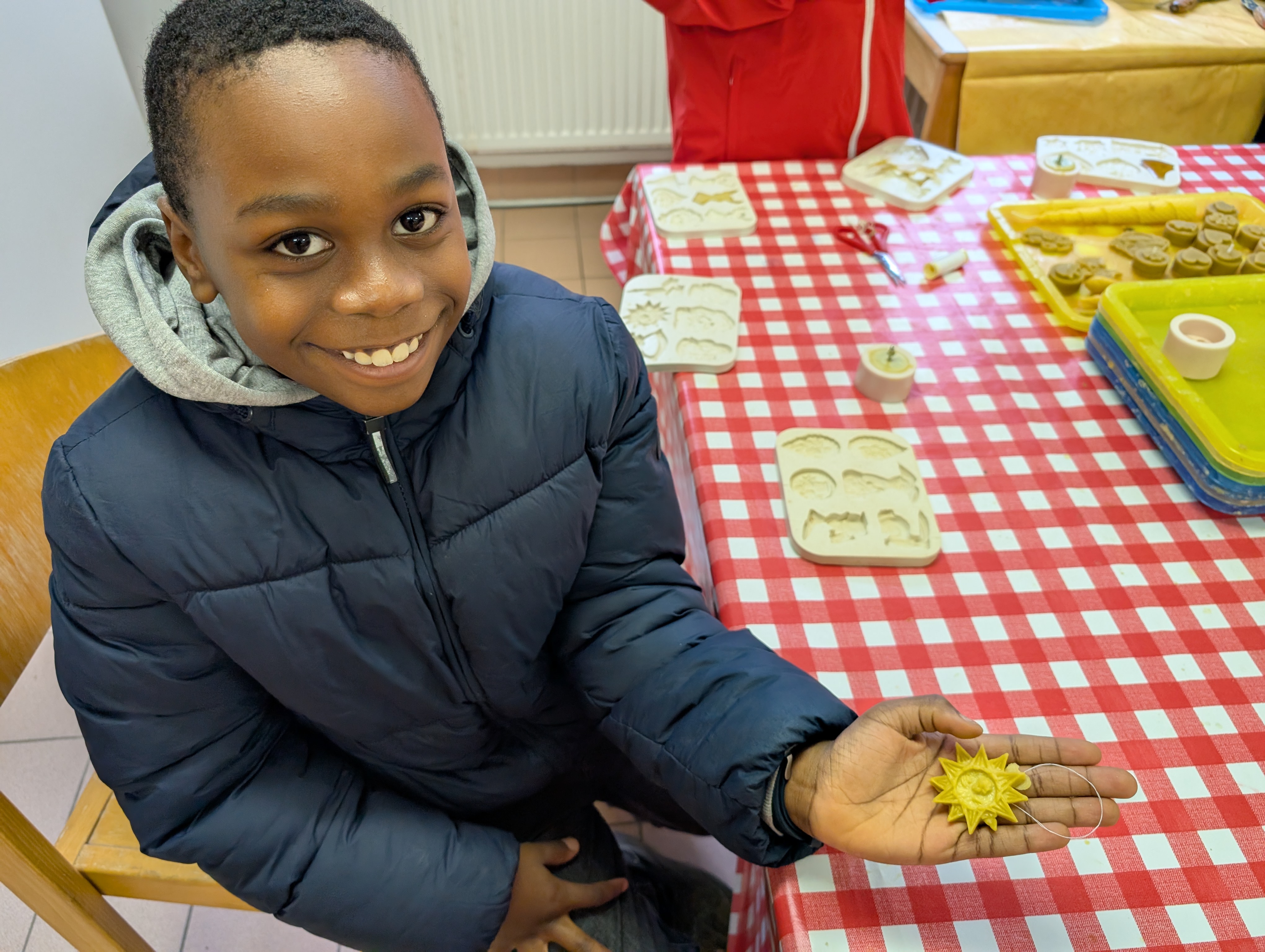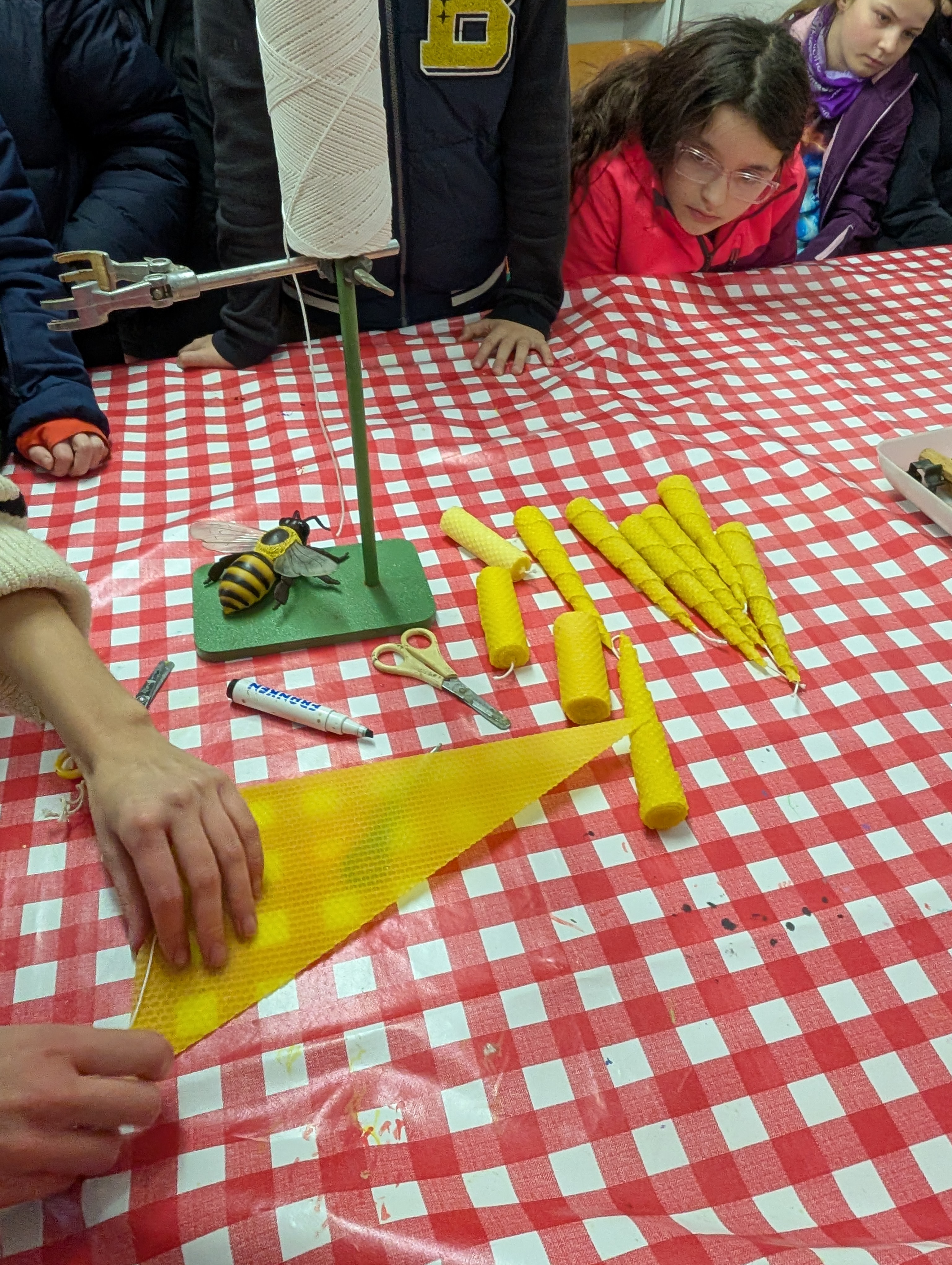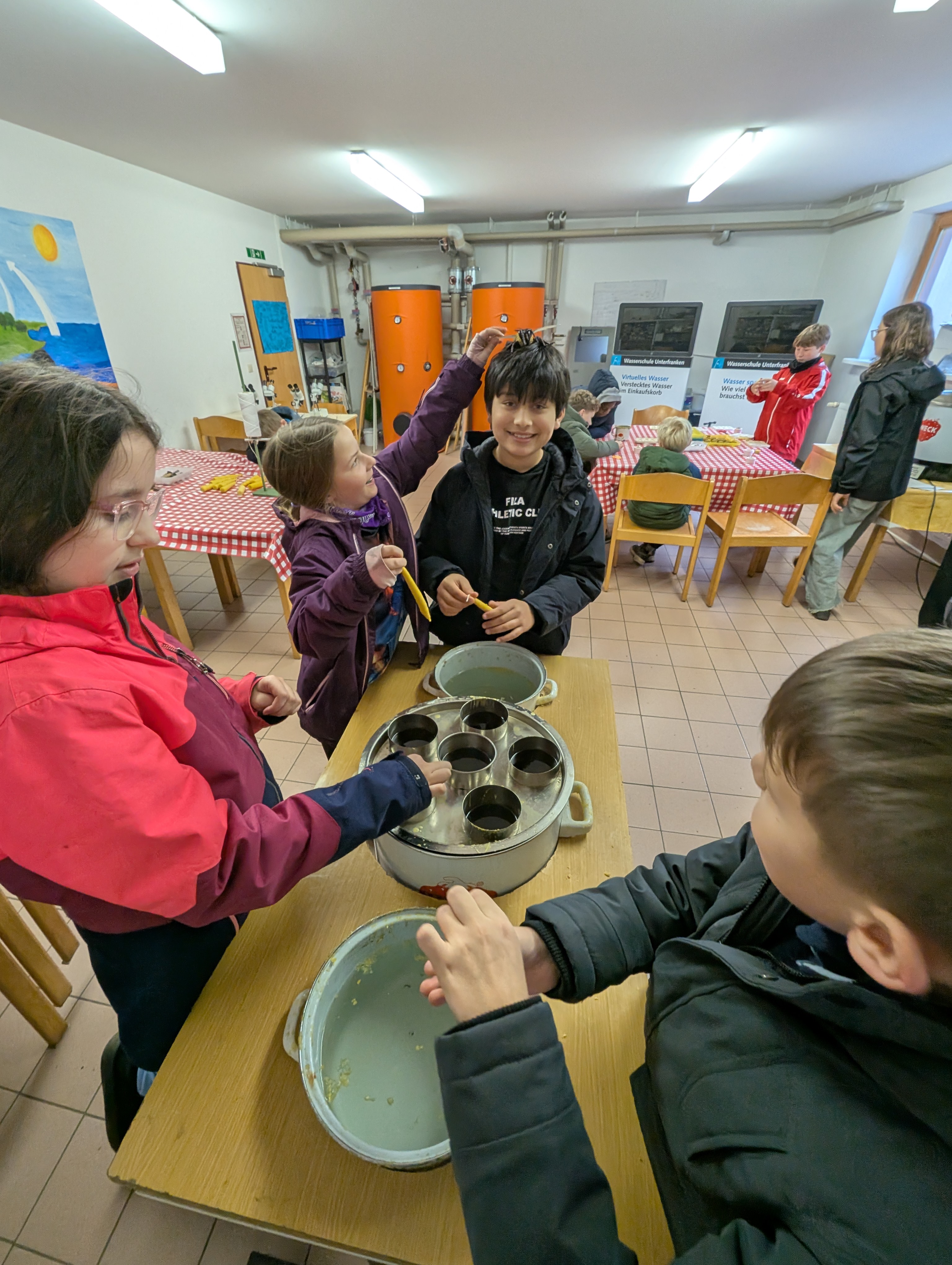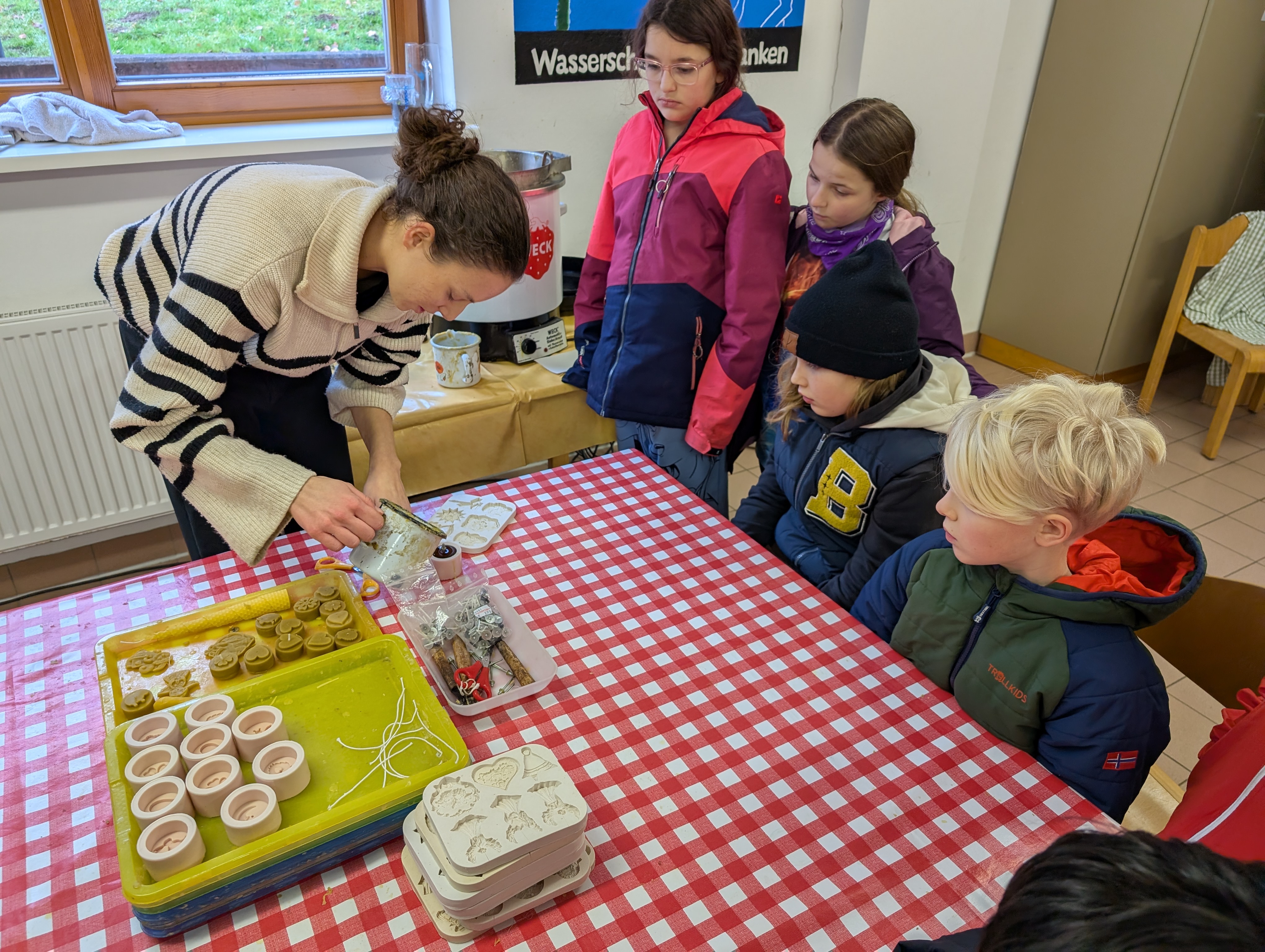 Ergänzt wurde das naturwissenschaftliche Arbeiten durch die Kerzenwerkstatt im Rahmen des Umweltlernprogramms des Roland-Eller-Umweltzentrums. Hier lernten die Kinder auf praktische Weise die Herstellung von Kerzen aus Bienenwachs kennen, probierten unterschiedliche Techniken wie Rollen, Gießen und Ziehen aus und erhielten altersgerechte Einblicke in die Bedeutung der Bienen sowie in nachhaltige Ressourcennutzung. Die selbst gestalteten Kerzen durften sie stolz mit nach Hause nehmen.